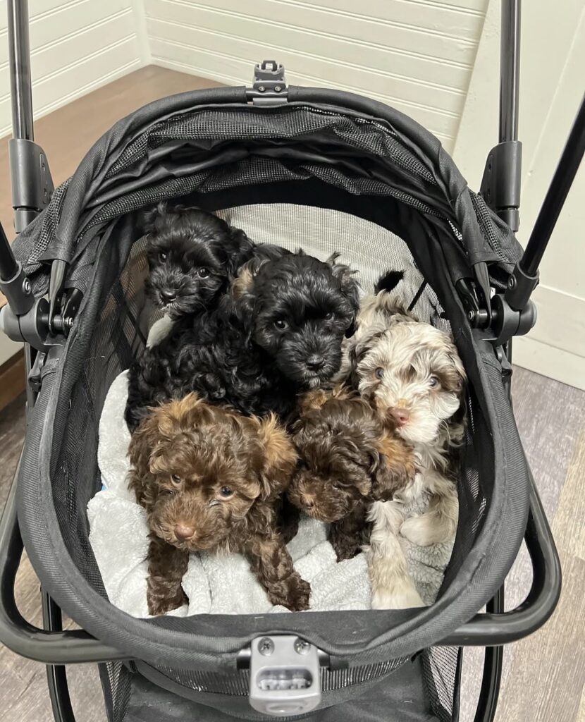 Quality Breeding: We work with experienced and reputable breeders who prioritize the health, temperament, and conformation of their Aussiedoodles. Our puppies come from carefully selected bloodlines, ensuring they inherit the best qualities of both the Australian Shepherd and Poodle.